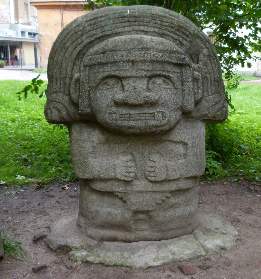 Aztec gods in the dirty yard behind the Kunstkamera
