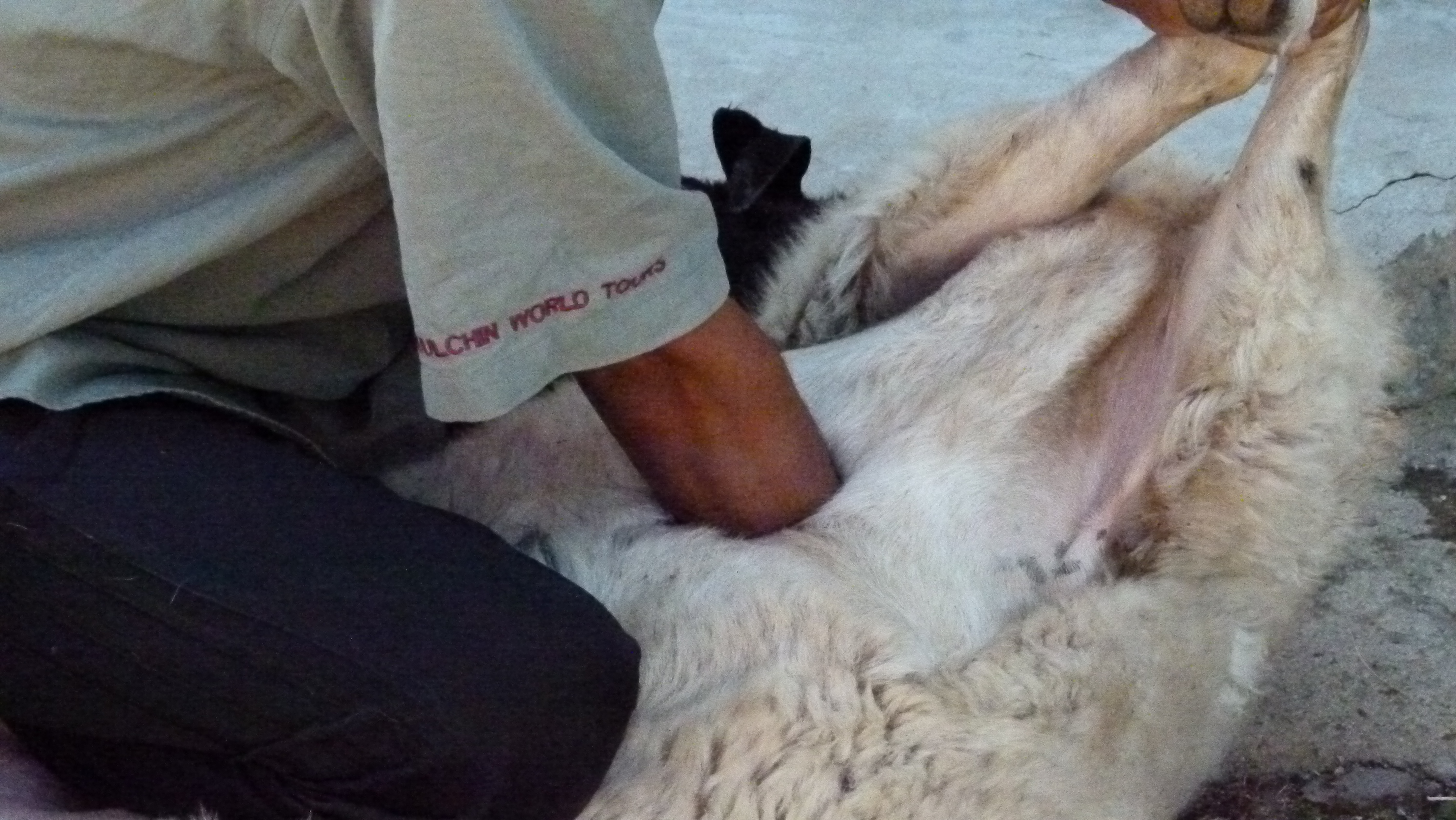 Mongolians love their animals though they eat a lot of meat. They try not to waste their lives and do not kill young lambs. They only slaughter older animals, and they do it very gently, as we could watch once. The man stroke the animal, cut into the abdominal wall (Bauchdecke) and then severed the artery to interrupt the blood supply to the brain. The mutton passed out within seconds (for a description in German see “wie ein Schaf in die Milchkanne kommt“).