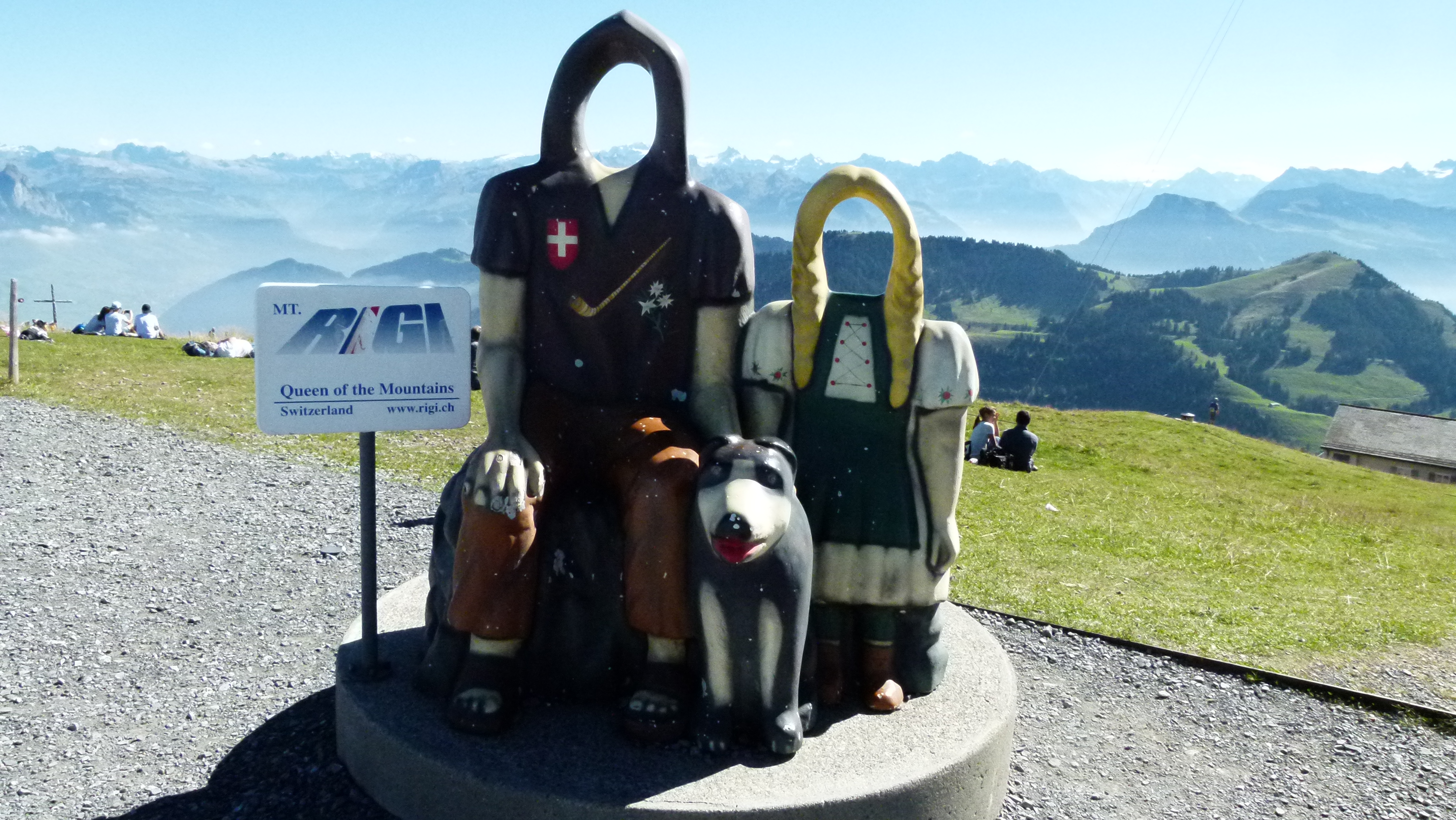 The tourist offices call the Rigi “the queen of the mountains“. On Rigi Kulm, tourists can even pretend to be real Swiss people from the mountains that do nothing else but look after their cows, sheep and goats, supported by their dogs – and they will always remember that they took this picture on the RIGI.