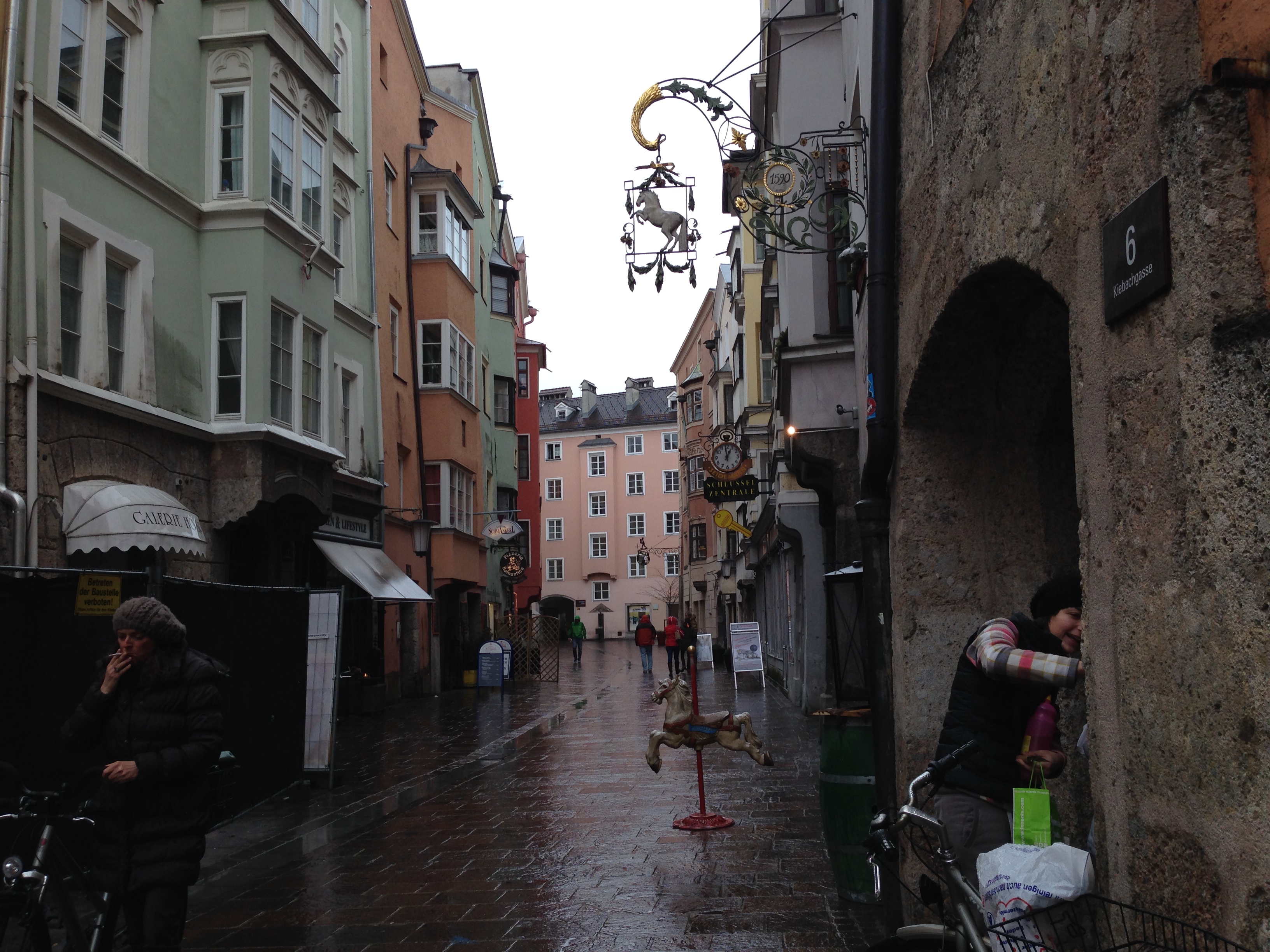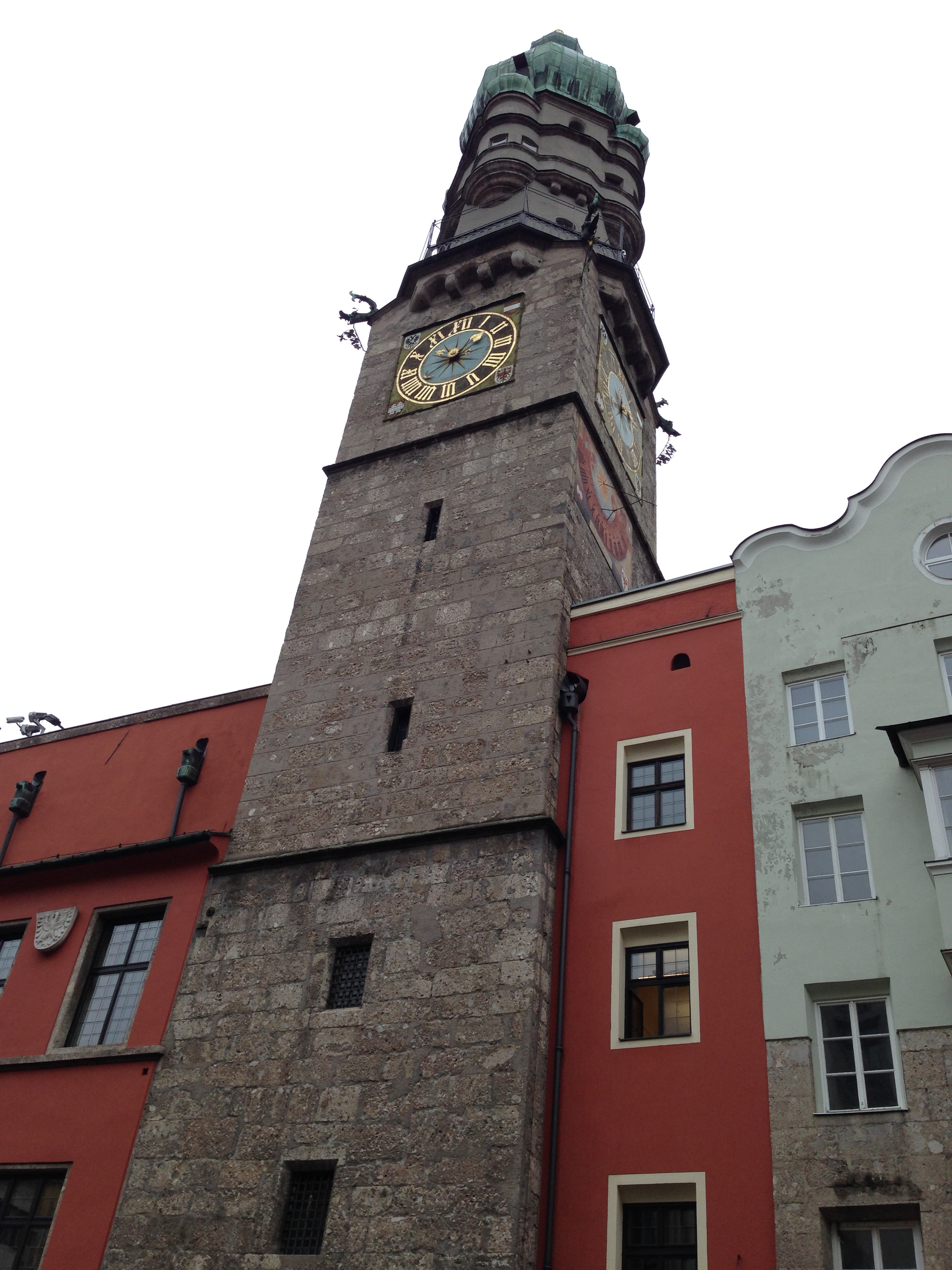 As the sun comes out, we can see the Nordkette just above the “Goldenes Dachl”. Our tour guide confirms, it takes her half an hour to go skiing there, and when there is snow in Innsbruck she can ski down into the garden of her house. She skis practically every day. I hear that students ski during their lunch break and then join the lessons again not taking off their ski boots. I am impresssed. I have always dreamed to live in a town that is so close to skiing opportunities…