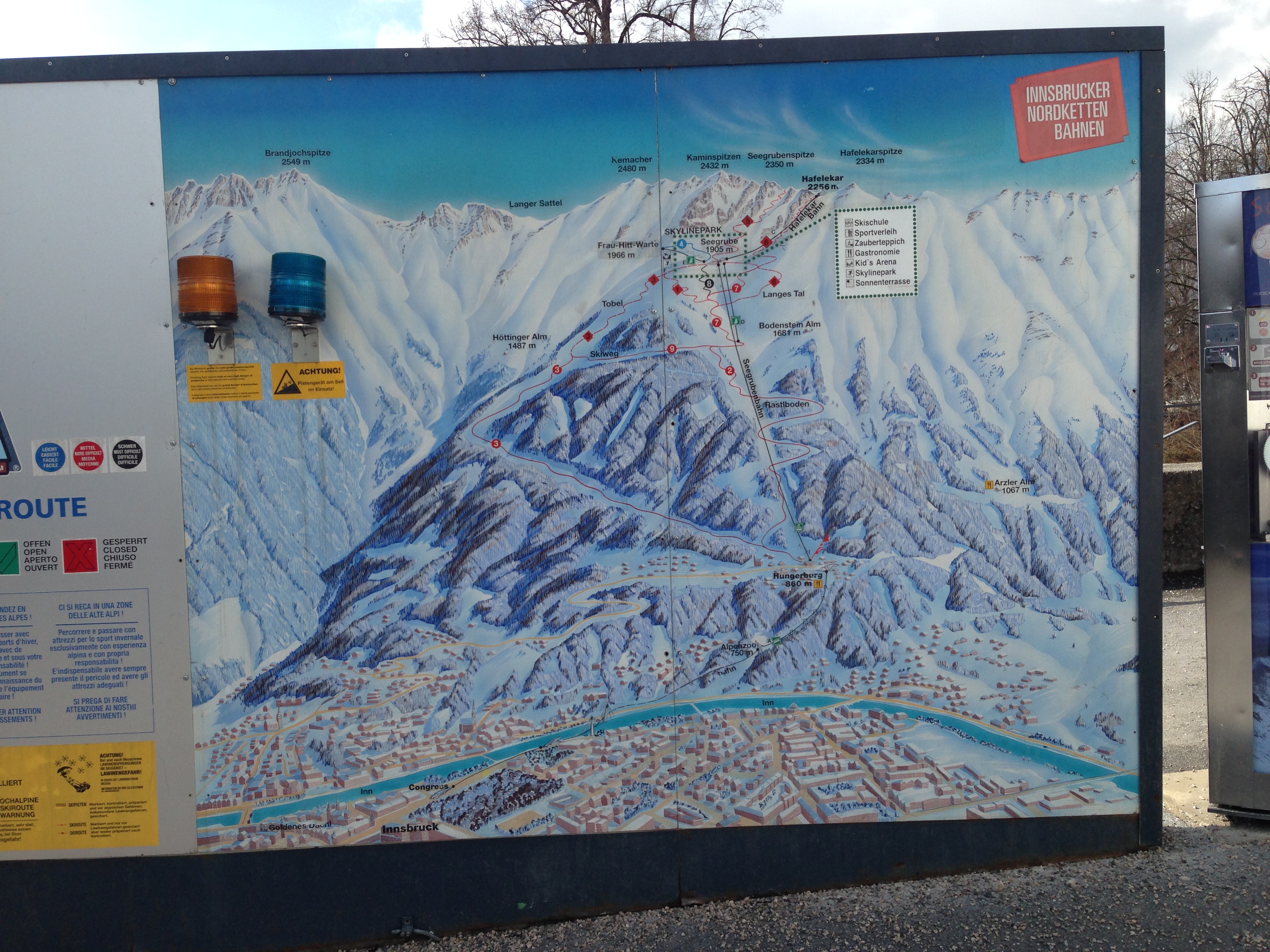 While strolling through the city of Innsbruck, I hear the sound of heavy ski boots banging on the pavement. I look up. Yes, there is a skier going by, helmet on his head, boots at his feet, carrying skis and poles. His friend is not so noisy. He is a snow boarder with soft boots, helmet on his head, snow board under his arm. Others come in sneakers, while the ski boots hang over their shoulders. We are in the middle of a town of 130’000 inhabitants. What are the skiers and snowboarders doing here?