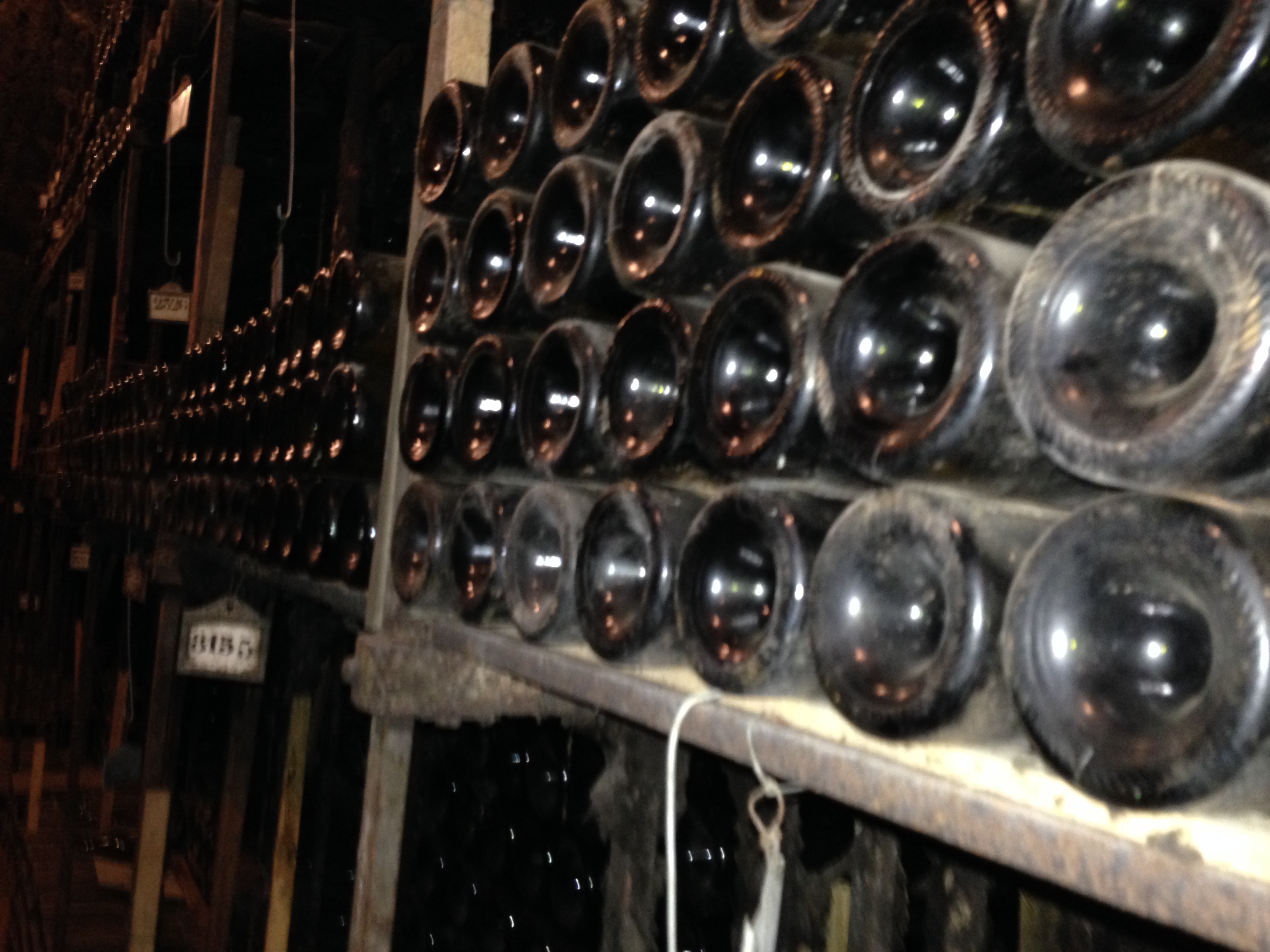 Henry de Villamont’s highlight is the tour through the cellar. Villamont is under Swiss management. They have renovated the estate. The cellar is spotlessly clean. Our guide is very proud of his estate. He takes us first into the cellar for white wines: 4000 barrels of French oak à 228l mature at a temperature of 14-15 degrees. The cellar for red wine is cooler. We are 12m under the earth. Behind a locked gate they keep old treasures… the oldest wine is from 1911.