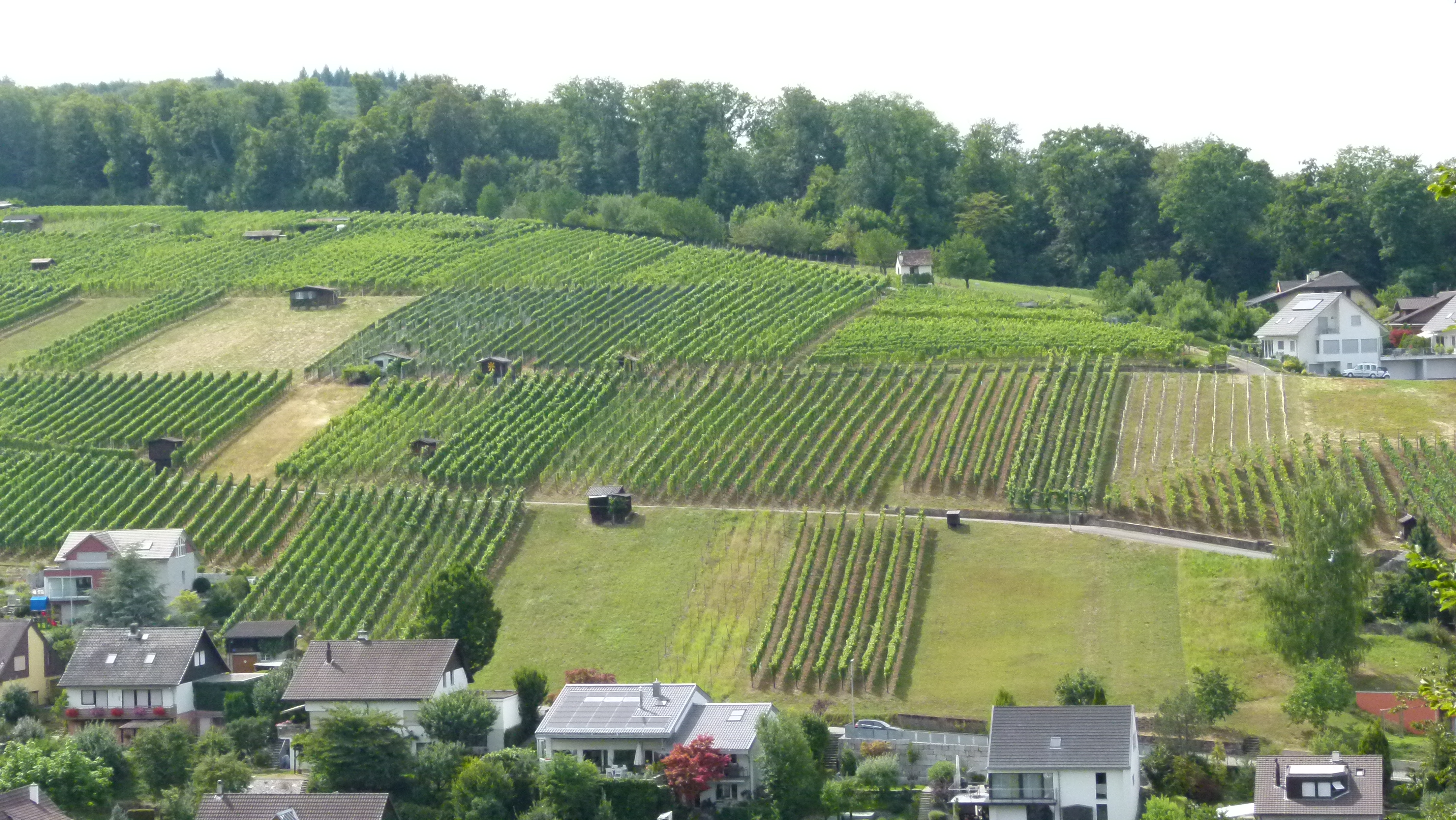 Nearby I have a wonderful view of the Klus vineyards and the forest hiding the ruins along the “Burgengratweg”. The Gempenplateau can be discerned in the background.