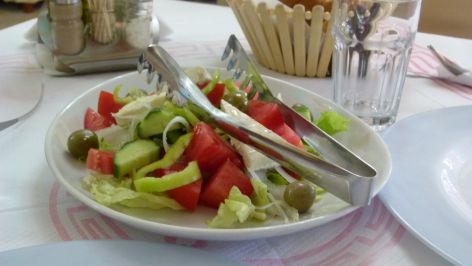 We say hello to the founder of the town, Pasha Mulleti, have lunch in a small restaurant (greek farmer salad, baked eggplant and lamb in a joghurt sauce).
