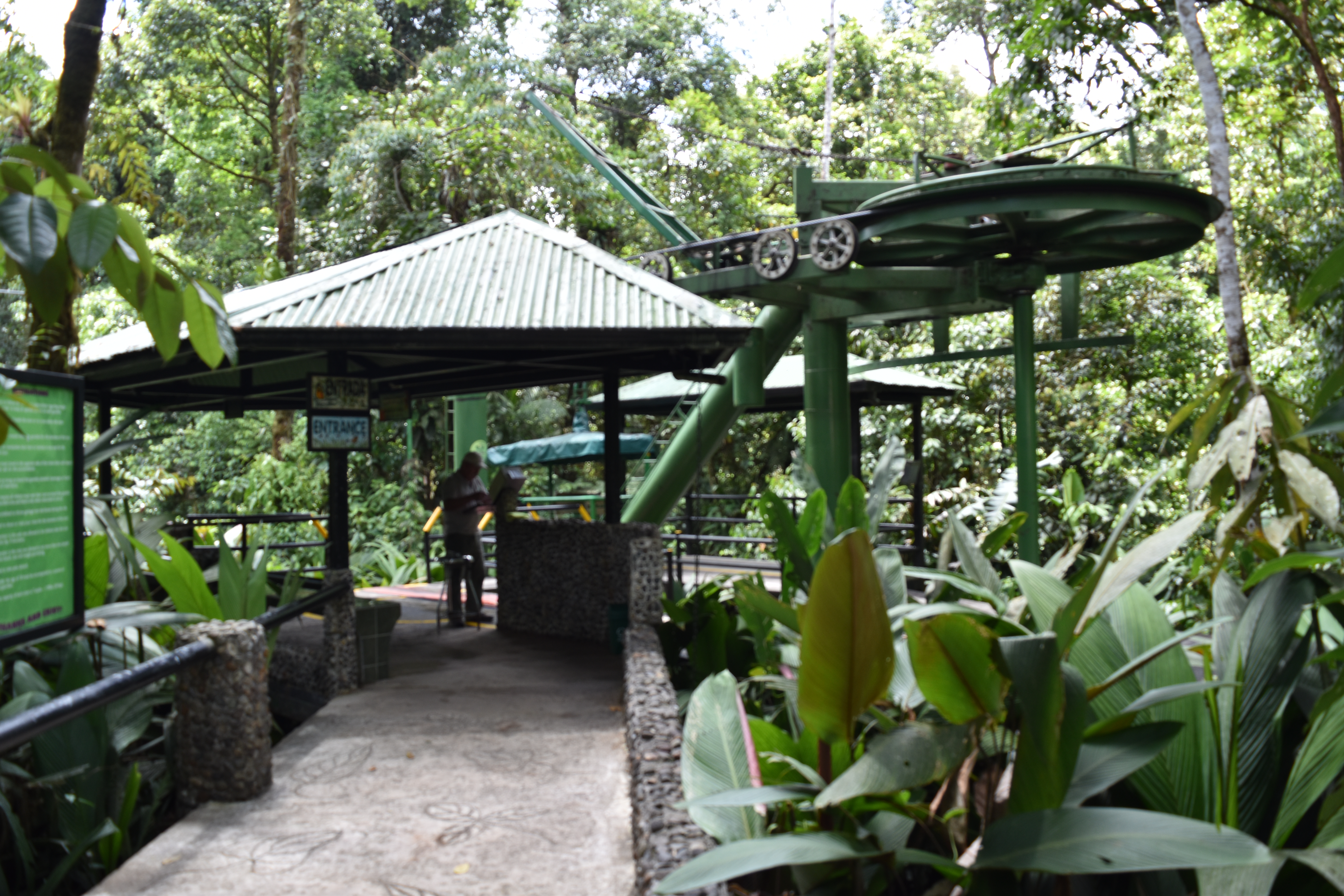 It offers cable car rides through the rain forest. We fly along quietly, first on the middle level of the trees and then along the crowns of them. For about an hour.