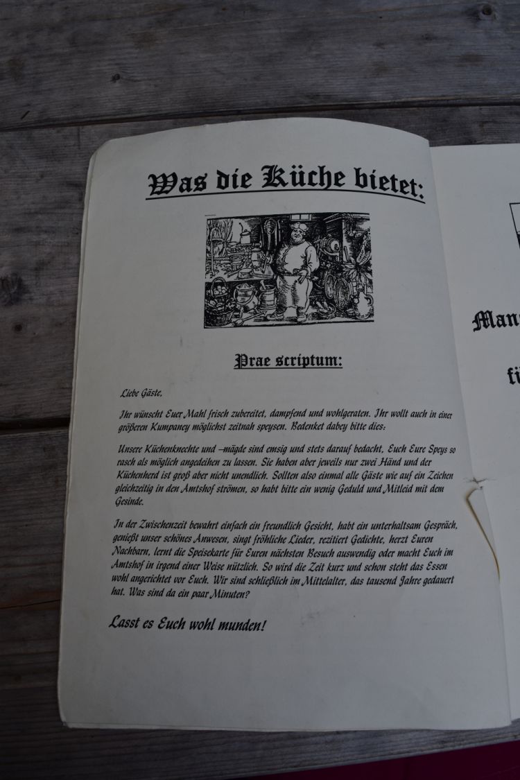 It is managed by an archaeologist who has specialized in medieval history. His menu looks indeed very medieval. Look at the Prae Scriptum about what the kitchen has to offer.