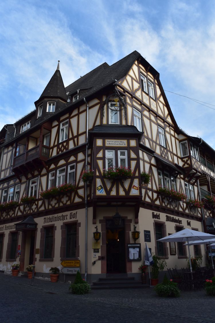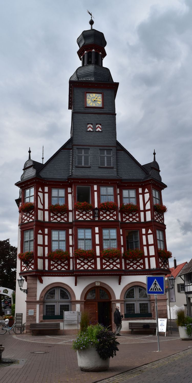 Strolling through the pretty town with the half-timbered houses