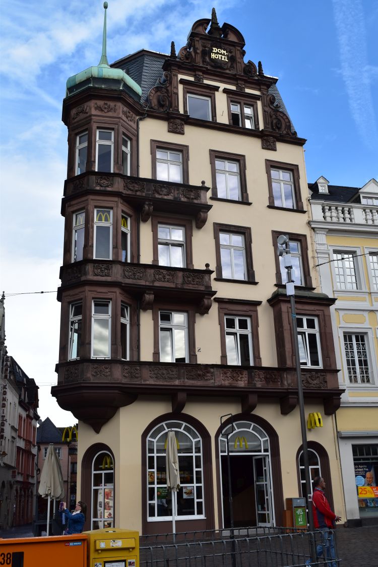 We are hungry, but there is no mercy in Colmar. Restaurants open only at seven pm. We find a table in the restaurant Bartholdi where we have trout simmered in Riesling and lamb chops provençales. The meal is okay and the atmosphere is welcoming.
