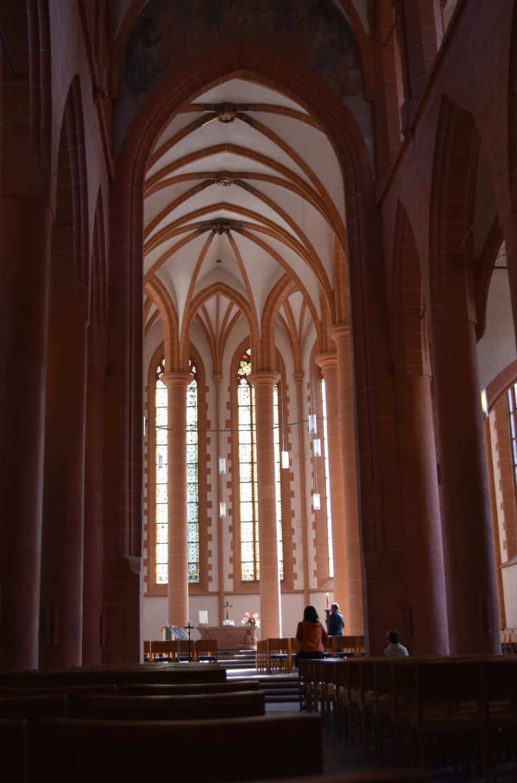 In the museum Unterlinden, we first want to see the altar of Issenheim in the church of the former lady monastery. This church displays this one altar that consists of several wings. It is like a huge book. The book is unfolded to show all its pages to the visitors.