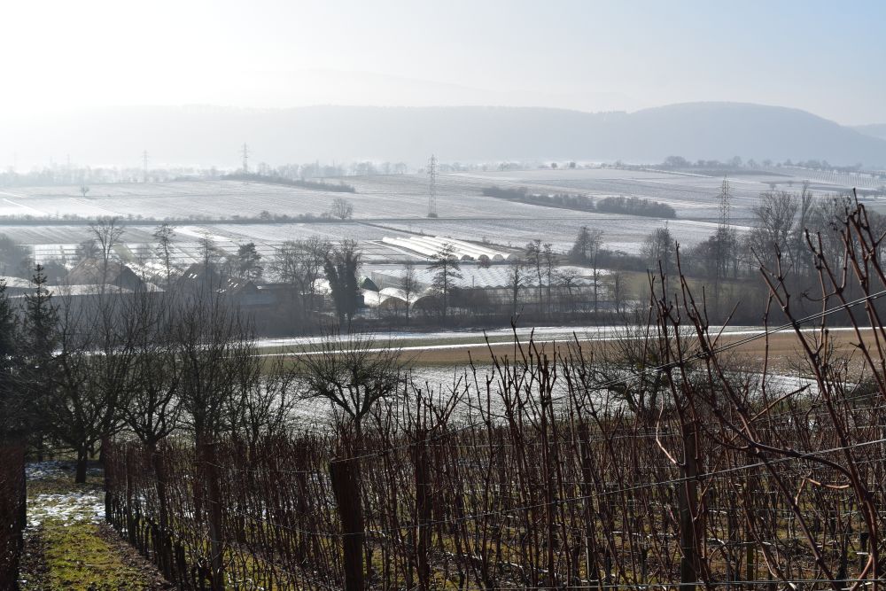 It is one of those winter days in January when I am happy to live in Basel, because the sun shines here, while the plateau of Switzerland including Zurich is covered with clouds. It is a sunny, but very, very cold day today. The fields on the Bruderholz are “dressed up” for winter.