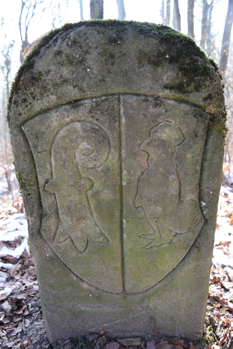 This boundary stone shows the bishop’s crook and a coq on the side pointing to the Prince-Bishopric. This must be the coat of arms of Christoph Blarer that the panel near the “corner stone” mentions.