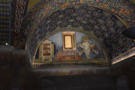 - four from the Ostrogothic Rule (493-540): Theoderic’s Mausoleum, the Arian Baptistery, Sant’Apollinare Nuovo (remodeled during Byzantine times) and the Archbishop’s Chapel.