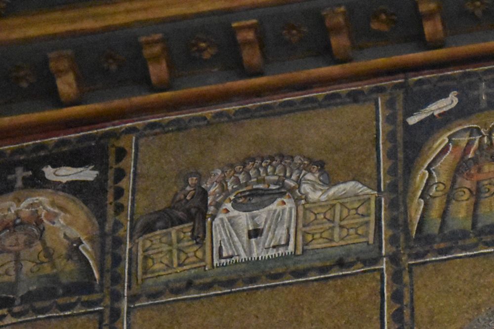 Ursula and Leni intepret each of the 26 panels. It is like reading the Bible, and I have to admit, I read the stories from the Bible like people did at that time. With such beautiful mosaics it is a great pleasure to discover them and to enjoy, how the artists made the essence clear. For instance, a lame that carries his bed on his back has just been healed – it is simple and clear.