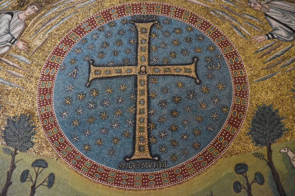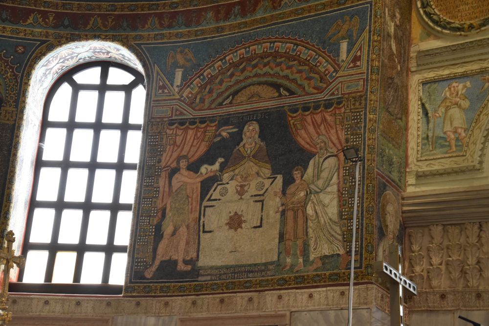 At the side we find three old acquaintances that we have come across in San Vitale: Abel sacrifying a sheep, Abraham about to sacrify his son Isaac and Melchisedec bringing wine and bread.