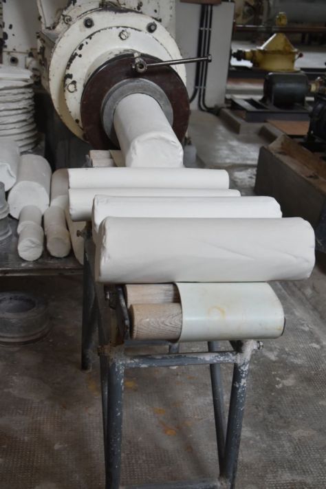 The raw material to produce plates, platters or plain bowls looks like over-sized sausages.