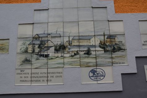 Always I have admired German porcelain. Not just Meissen, but also Rosenthal or Hutschenreuther. But I never thought about where the latter brands come from. I found out, when stopping over in Oberfranken. The family Hutschenreuther started producing porcelain in 1814. It was a love story, as Carolus M. Hutschenreuther married the daughter of the forest ranger. The ranger knew where to find the raw material for porcelain, caolin (or “white earth”). In 1857 Carolus’ son Lorenz founded his own porcelain factory in Selb, as this panel shows.