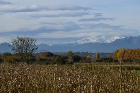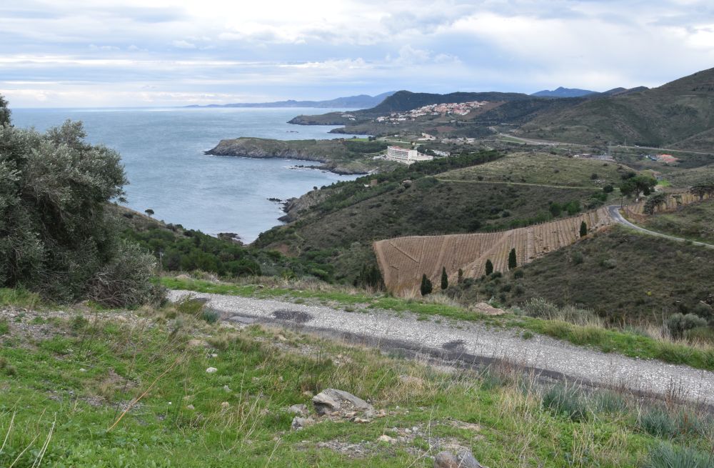 We cross the border to France and drive through the steep vineyards of Banyuls. It must be tough to grow wine here. Along the road, we come across a small wine shop, where I buy a bottle of Mourvèdre from Collioure.