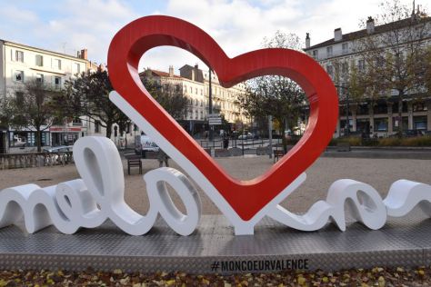 It carries the hashtag #moncoeurvalence. Sorry, we are not selfie addicts (the hashtag suggests to make selfies here). We enter the old city center, as seen through the heart.