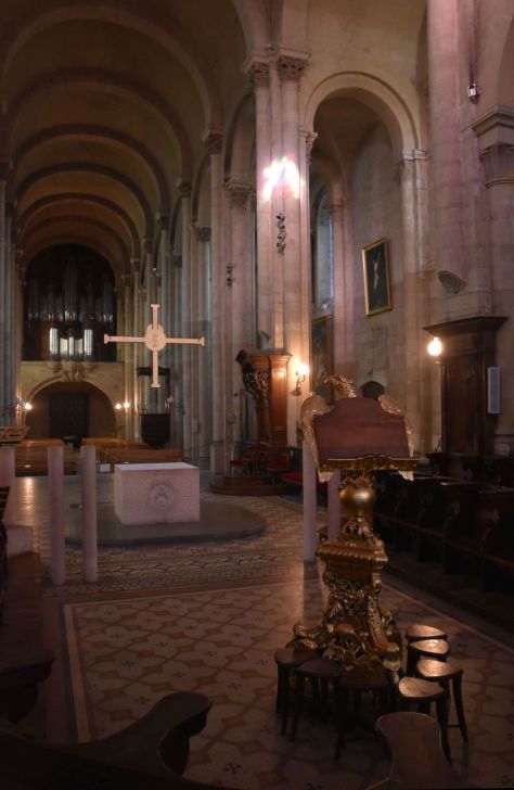 The Romansque cathedral St. Apollinaire collapsed in the 17th century, but has been reconstructed true to the original. Inside are three naves of almost the same height…