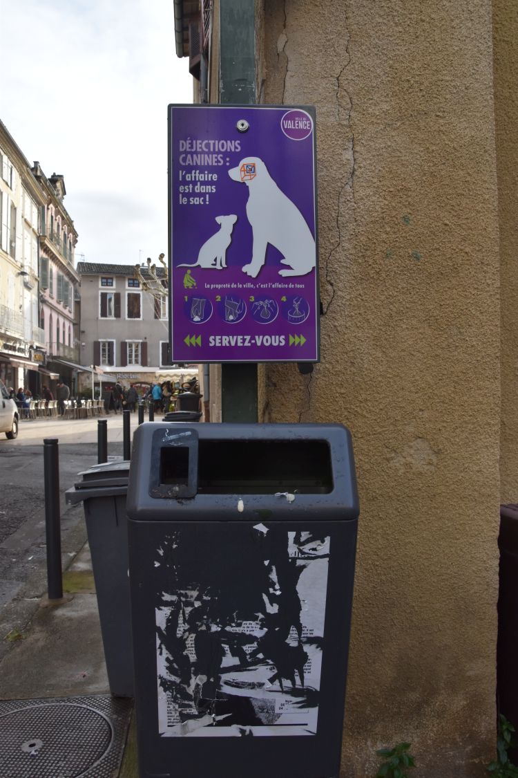 Valence strives to be clean, but how did we say forty years ago at university: “French planning is more French than planning”. I really could not find, where I could take the sack, in case I had a dog, be it small or tall… but I love the humor that guided the author of this plate.