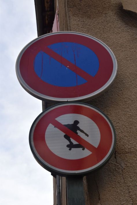 Never have I seen this street sign before – surfboards are forbidden here, only that! Bicycles, rollerblades, everything else is allowed – or am I mistaken?