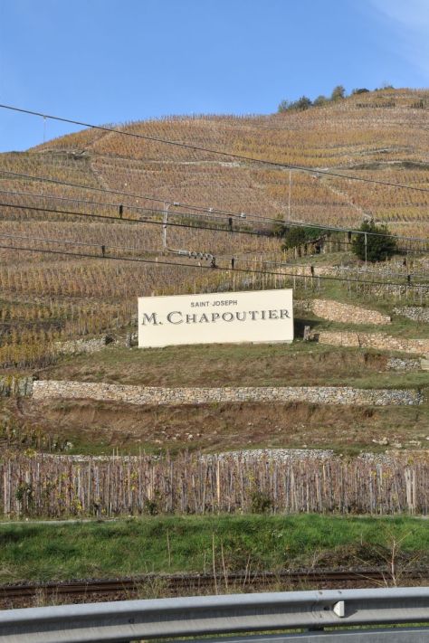 We leave Valence and head north following the vineyards of the Côte du Rhone. In the Saint Joseph area, I take a foto of the vineyard of one of my favourite wine growers, Chapoutier.