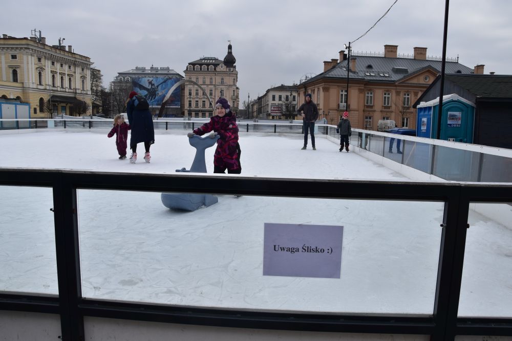 Watch out – uwaga ślisko 😉 – this ice rink is slippery. The word “ślisko” already sounds “slippery”. Well, this is what is to be expected from ice rinks (smiley).