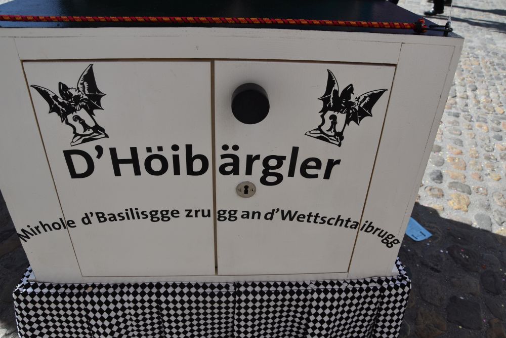 Not everybody wants to leave Basel, the basilisks are faithful, and this is why the Höibärgler want to bring them back to the Wettstein bridge: “Mir hole d’Basilisgge zrugg and d’Wettschtaibrugg” (“We bring back the Basilisks to the Wettstein bridge”).