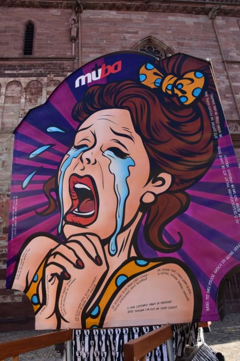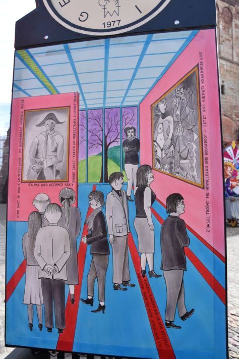 In 1967 Picasso’s “Harlequin” and “two Brothers” remained in Basel, though the donator who had financial problems intended to sell them. I was a teenager then and I remember the enthusiasm and the legendary decision of the inhabitants of Basel to keep those two paintings. Again this year Picasso is venerated in Basel: The Beyeler museum shows his early paintings of the blue and rose period. The Gellerettli pipers group created a lantern with the topic “himmelblau und rooseroot” (azure and pink): “Z’Basel dräumt me himmelblau und roosarot. Jetzt git’s niemets, wo an d’Muba goot” (“in Basel people are dreaming in azure and pink. Now there is no one visiting the Muba (trade fair) any more”; presumably because they all prefer to see their Picassos in the Beyeler museum).