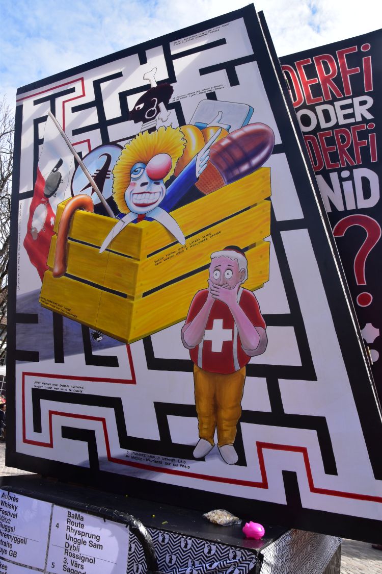 I do hope that censorship will not make the carnival shut up. I do hope that the carnival will continue to play its role as a jester for the people at power and for all of us. It is an organized and discrete valve for the feelings and thoughts of the citizens of Basel. The carnival group “Basler Bebbi” coined the term “shitblizzard” on their lantern: “Das git kai shitstorm of dym Handy, sondern a shitblizzard, Randy (this produces not only a shitstorm on your smartphone, but a shitblizzard)” – I do hope, it was a short shitblizzard.
