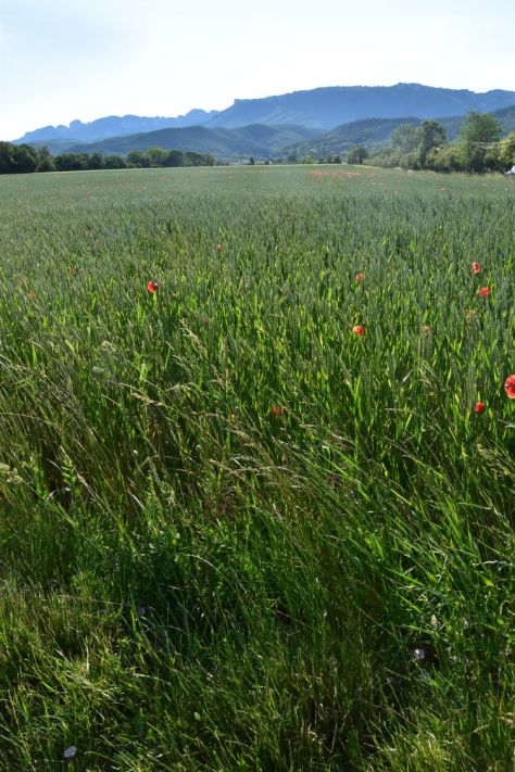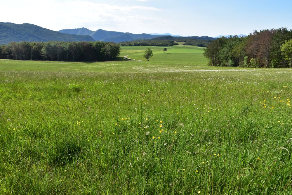 We are now in the Vercors. Meadows around us and in the background more steep mountains.