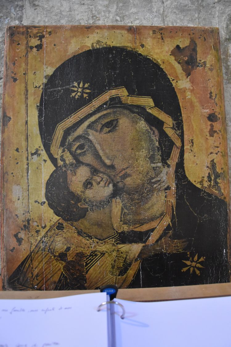 Near the entry I find this religious panel written in French. It is difficult to translate the elegance of the French language.