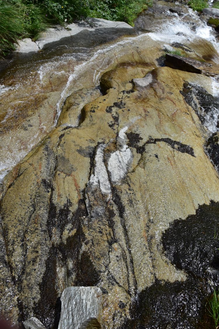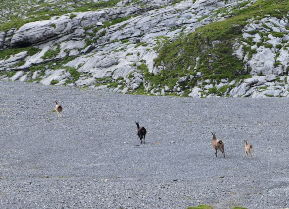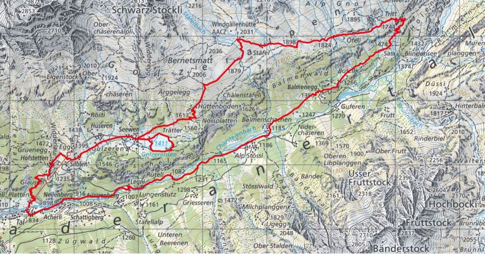 The family that had slept in the same room with us, is starting for the geology excursion provided by the Windgällenhütte. A documentation hangs around the neck of the husband. He hopes to find some crystals on the way. Back at home I take out my “Die Geologie der Alpen aus der Luft” by Kurt Rüwe and Ruedi Homberger (Weishaupt Verlag 2011) and find a chapter about the Windgällen massif (p. 246/47). The book explains that the top of the Chli Windgälle is made from (older) crystalline basement (kristallines Grundgebirge) and neighbouring Gross Windgälle from (younger) mesozoic sediments. At the Chli Windgälle, the (older) chrystalline basement layer is above the mesozoic (younger) layer. This must be a fascinating excursion.