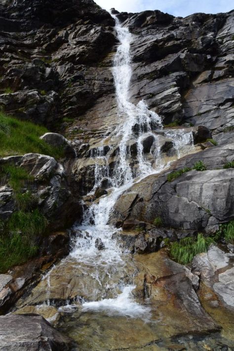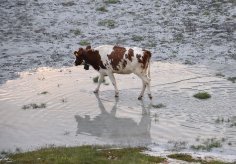 We say good-bye to the family and to the Windgälllen hut and descend to the Golzeren Lake. It is a pretty walk. While my friend takes photos, I eat blueberries – the first ones I find this year.