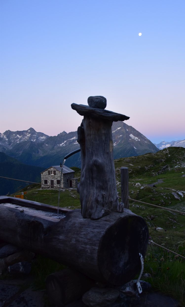 While it is dawning, the fountain in front of the Windgällehütte atrracts me.