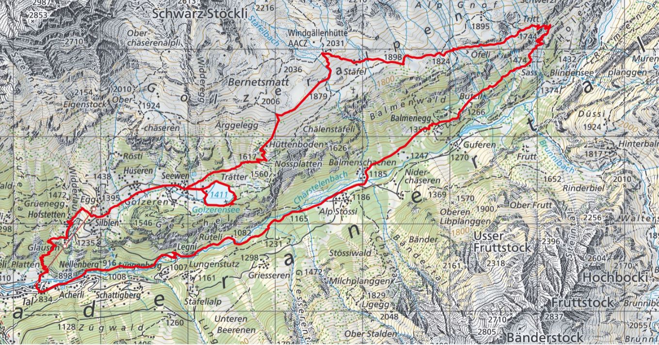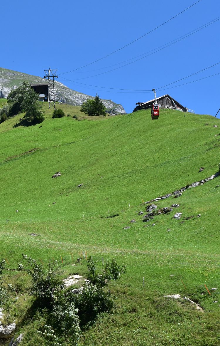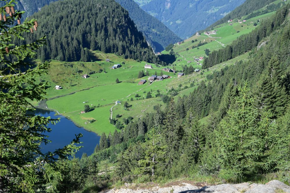 In Seewen we meet many Sunday tourists that have come up by cable car from Golzern Tal. We join them and walk to the lake.