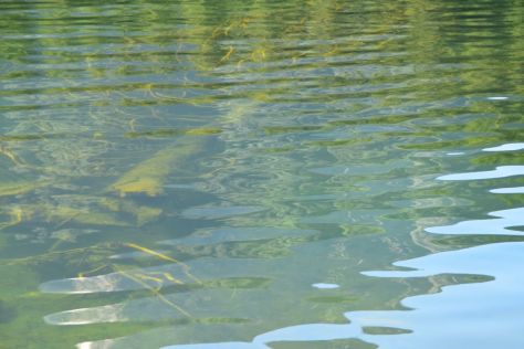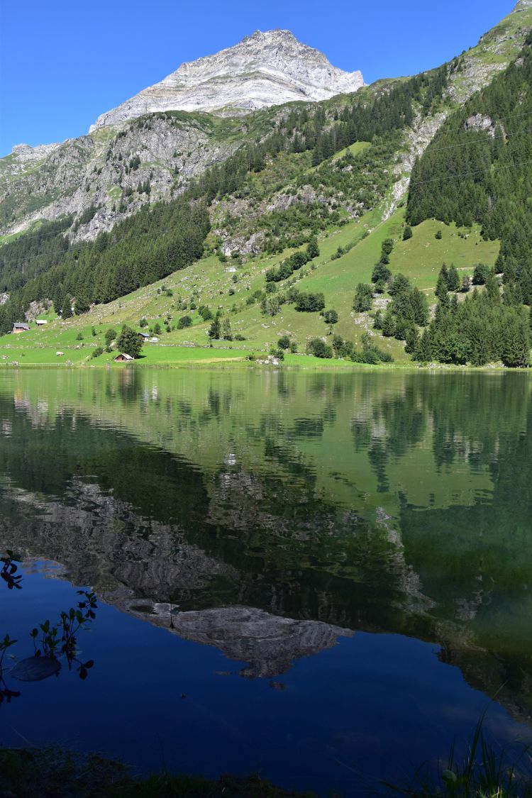 We reach the eastern shore, amidst swimmers and sunbathers that enjoy the small beach. Great idea to take a swim here. I enjoy the view towards Susten, also reflecting in the lake.