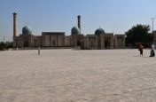 The small building in front is the library museum that holds the Osman Koran from the 7th century which is said to be one of five existing copies. Timur took it from Irak to Samarkand, then the Russians transferred it to Moscow, and Lenin returned it later.
