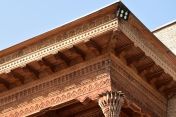 The entrance to the new Hazrati Mosque is beautifully carved. Under this roof, men are now rolling out their carpets to pray.