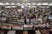 The market under the blue cupola takes place on two levels. From the upper level I take the photo of the meat department – “go’sht” means “meat” in the Uzbek language, and it is written in the Latin and in the Cyrillic alphabet.