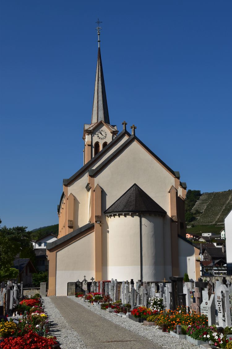 One of the villages now belonging to Solothurn, Mariastein, became an important place of pilgrimage. In 1648, the abbot of the Benedictine monastery at Beinwil decided to move to Mariastein. At Mariastein, he built the neo-gothic church with the baroque interior. The monastery was active until 1874, then closed down and reopened in 1941. The church and the monastery have been fully renovated after 1971. This is the view from the north, with the Blauen chain in the background.