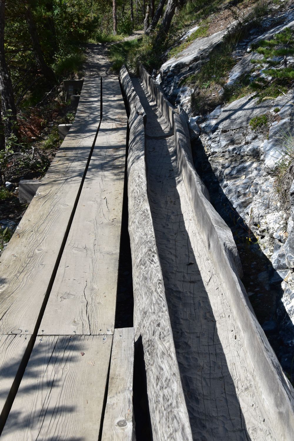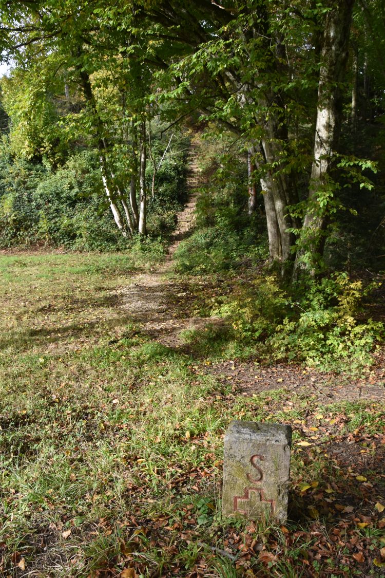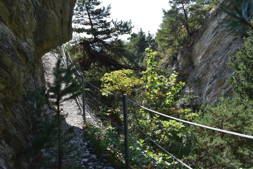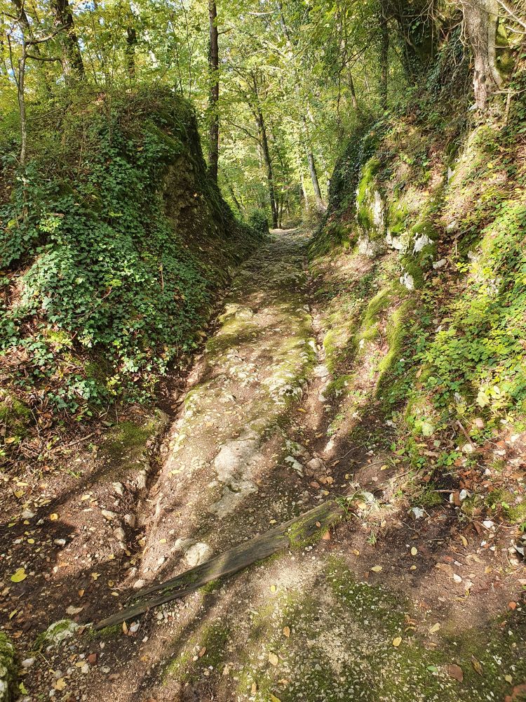 It was the braking wheels of the carts that engraved the marks in the rock. The old Roman cart road is now the hiking path that I take to walk down to Flüh.