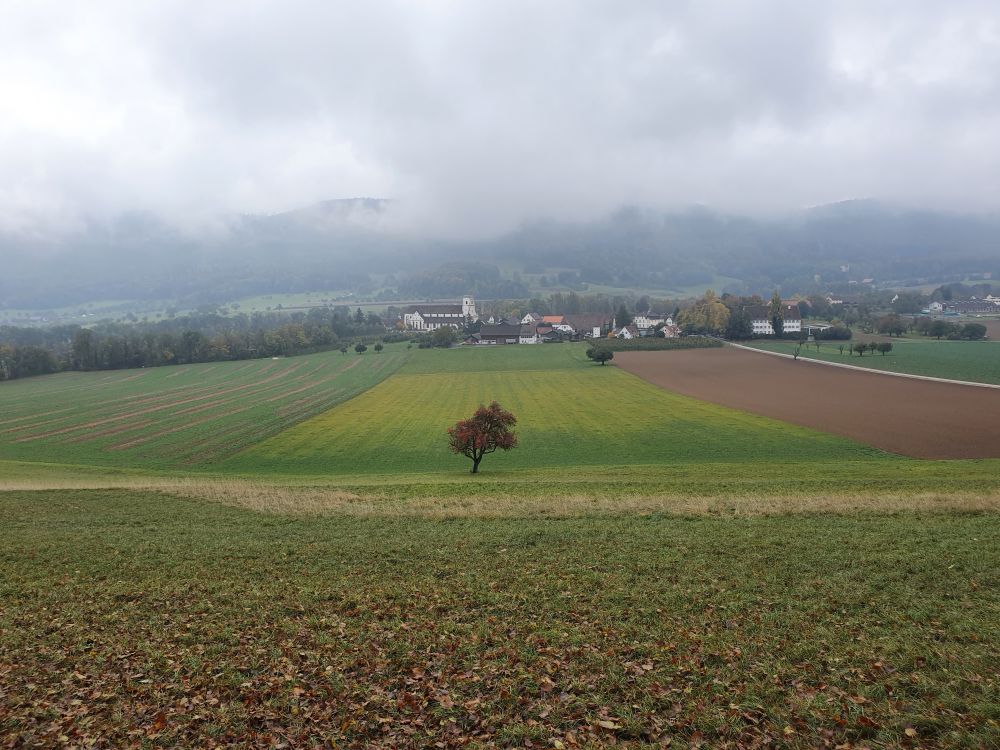 By bike, I take the Napoleon route to return home, looking back at the village Flüh that climbs up from the valley towards Mariastein and the Blauen chain.