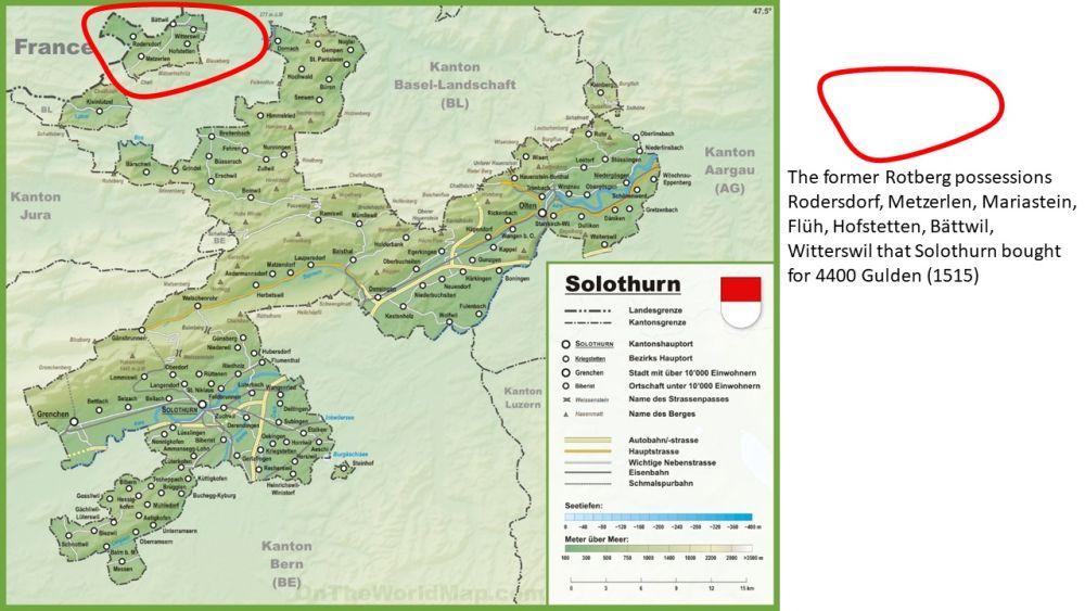 - Why does the canton of Solothurn (SO) “own” an exclave within Basel (BL)? What can the Burg Rotberg tell us about this?