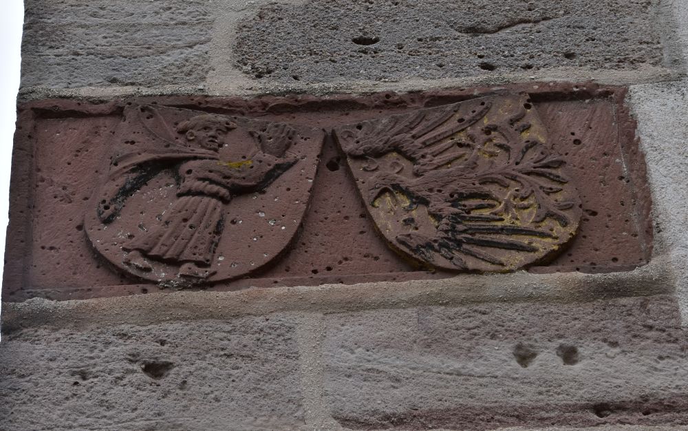- 1420: The Münch-Eptingen enlarge the belfry and insert their coat of arms on the western edge (monk and eagle).