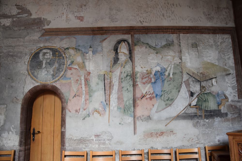 - 1507: New walls need new frescoes. The Canon has the church repainted, whereby preserving the Arbogast legend and the Resurrection niche.