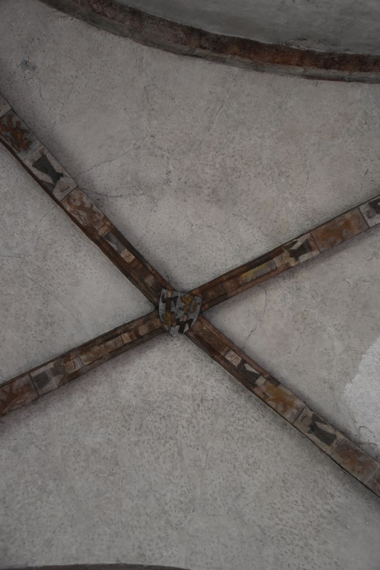 They reconstruct the vault of the front choir topping it with the coat of arms of the Münch-Löwenberg (two monks and two lions), and there are monks and lions along the ribs of the vaults.