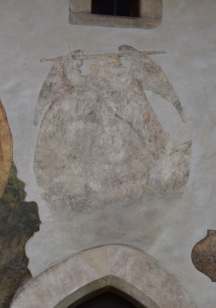 The so-called resurrection niche on the northern wall of the nave is the second 1450 fresco that has been preserved.