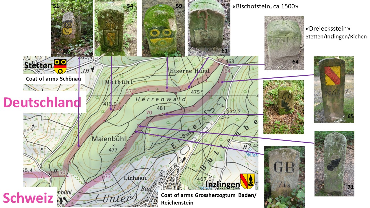 Stone #61 is on the northern border of the “Eisernen Hand” (towards Stetten which is located north of the “Iron Hand”).