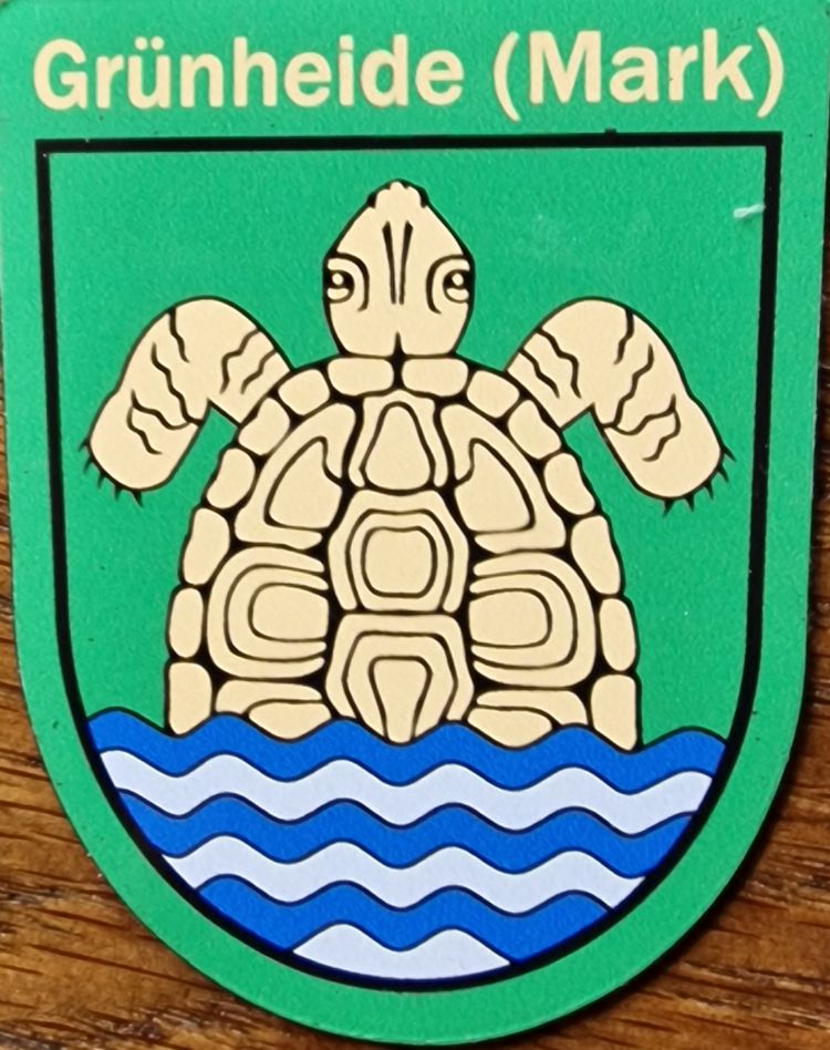Grünheide is proud of their turtles. But where are the real turtles? The lady at the tourist office explained to me that turtles used to live around Grünheide and have decorated the coat of arms since 1934.